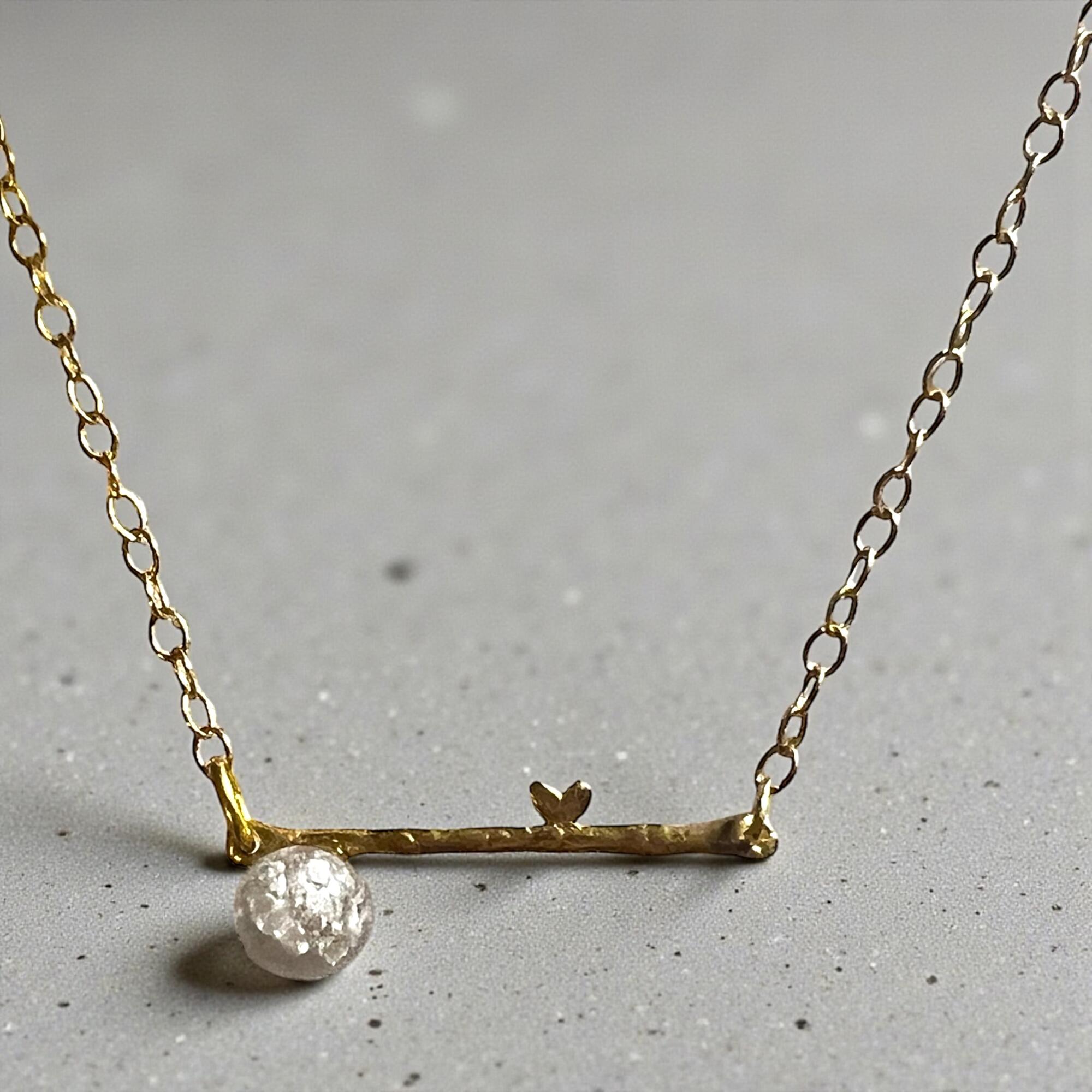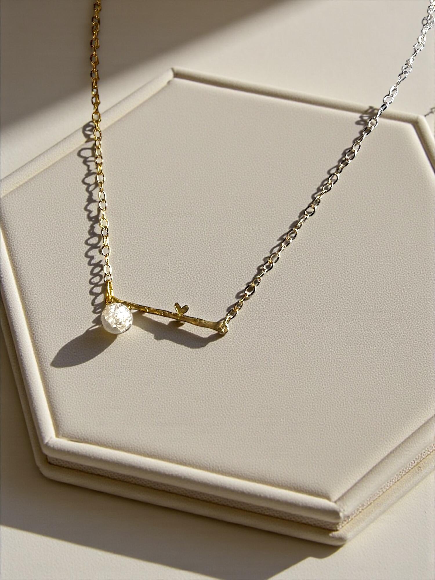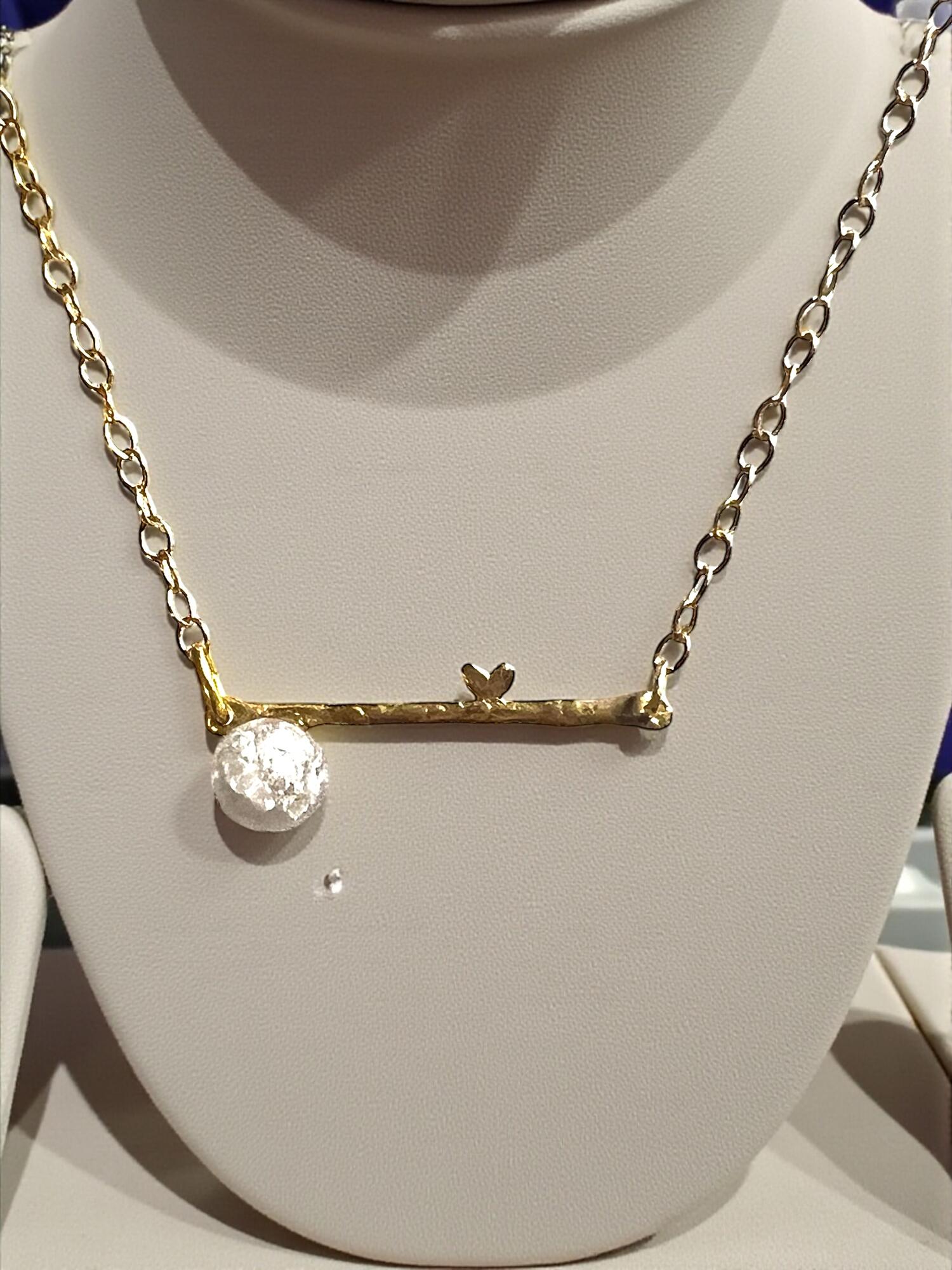 ophæng og kæde er i 925 sølv der er forgyldt med 14 karat guld. Kæden er ca 46 cm