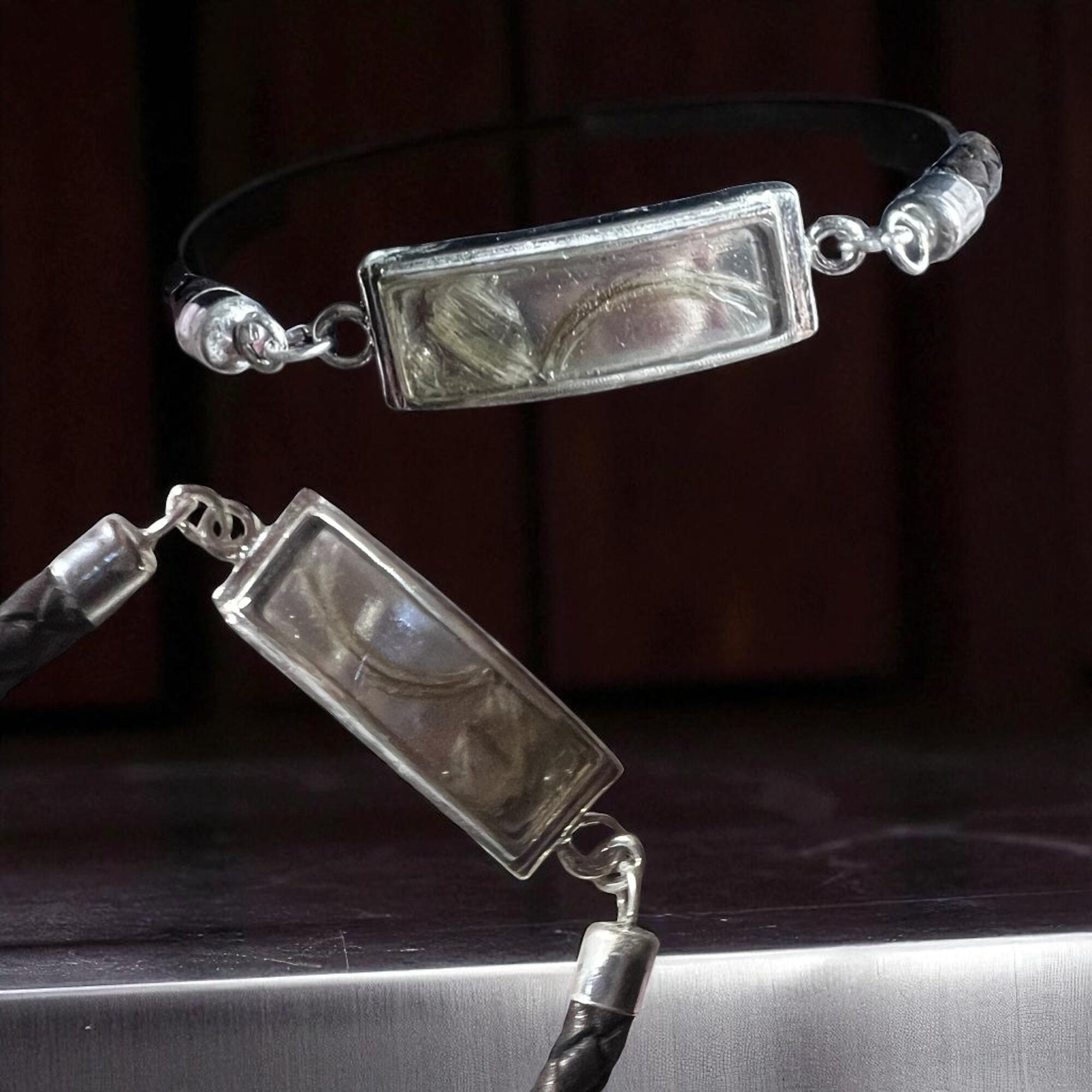 Dette smykke er lavet hvor hårlokken støbes ind i Resin